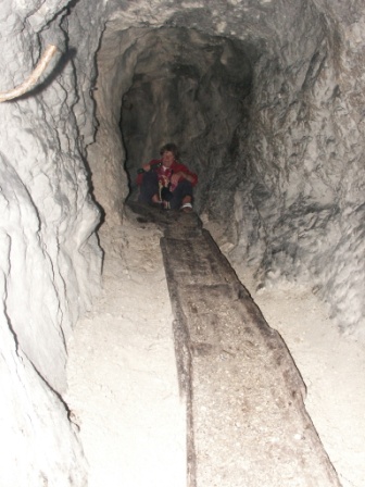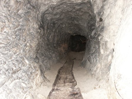 hoch oben und in dem Tunnel mit der Zisterne die Schienen, auf denen