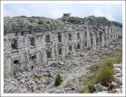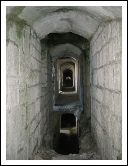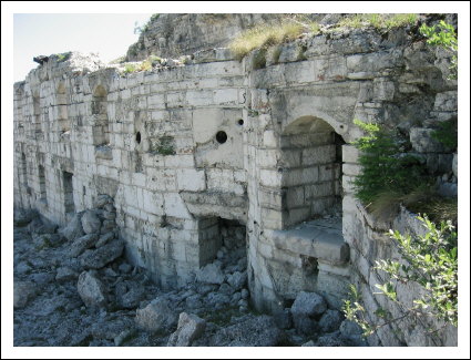 Blick auf den vorderen versetzten Batterieblock, der durch eine Poterne