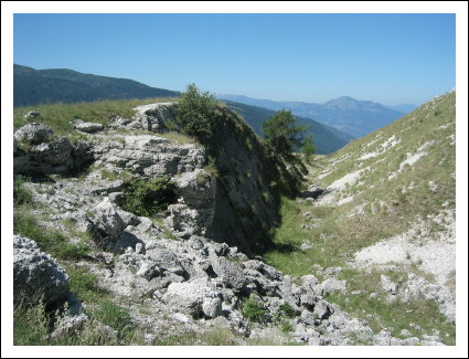 der rechte Grabenast vom Koffer aus gesehen. Der rechte Hang war