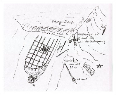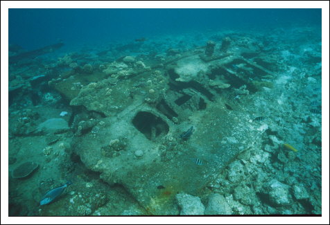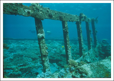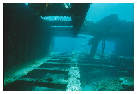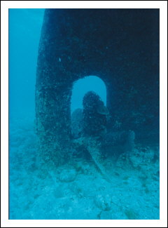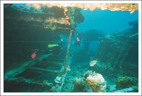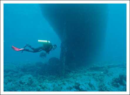 ca. 8m tiefen Wasser. Er eignet sich sehr zum Übernachten da Der Tauchgang beginnt am besten über dem Wrack der