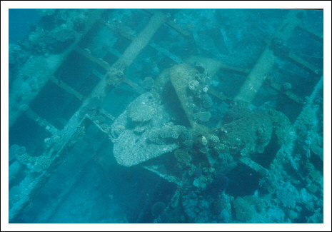 Die Schiffschraube gehört zu einem sonst völlig zerstörten Wrack von dem keine Teile mehr übrig geblieben sind. Um die Schraube schön