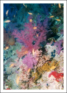erhoben. Entweder der Tauchgang beginnt in Anemone City mit der Überquerung des Canyons im tiefen Blau, oder direkt am Shark Reef an der Steilwand. Thunfische kreisen meist unter der Steilwand bis auf 50m Tiefe. Die Steilwand weist mehrere kleine Grotten auf in denen Barsche stehen und die Taucher betrachten. Meist herrscht eine leichte bis starke Strömung , die das Schweben erleichtern. Es ist fast immer eine Umrundung des Shark Reefs möglich die sehr schön ist.. Die Barakudas warten meist auch schon an der Ecke auf ca. 15m. An dem flacher auslaufenden Übergang zum Jolanda Reef kann man schöne Stein- und Skorpionfische sehen. Genau zwischen Shark und Jolanda warten verschiedene Muränen auf die Fotografen. Jetzt beginnt am sanften Abhang des Jolandariffs ein sehr schöner Weichkorallengarten, der die Farben aber nur mit einer Lampe preisgibt. Für Fotos ist ein Blitz wichtig. Dann tauchen die Überreste des 1980 gesunkenen Frachters Jolanda auf. Gestapelte Badewannen und Sanitäreinrichtungen in großer Anzahl liegen verstreut oder gestapelt auf der sandigen Fläche. Die Jolanda selbst ist bei einem Erdbeben den Abhang runter gerutscht und liegt unerreichbar auf ca. 100m. Es schwimmen auch Schildkröten an den Riffs, wobei manche ein aggressives Verhalten an den Tag legen. Im Jolanda Riff ist auch eine Grotte die zum Durchtauchen geeignet ist, wenn die Muräne nicht gerade ihr Schläfchen macht. Das Austauchen ist nicht langweilig, da der Bewuchs auch auf 3-5m sehr schön ist. |