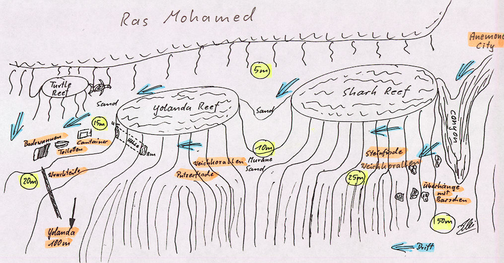 Zeichnung vom Jolanda und Shark Riff im Roten Meer