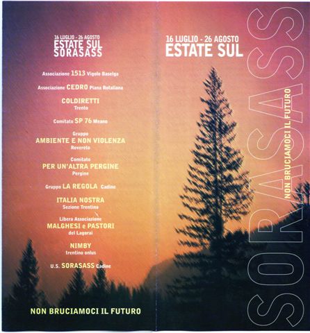 Sommerprogramm für den Soprasasso und Monte Bondone: Festung Trient Führungen: 22.07. um 17.00: Feldmäßige Befestigungen der Verteidigungssektion Nr.V des Jahres 1915 auf dem Soprasasso Vortrag am 29.07. um 20.30 im Auditorium Vaneze zu den feldmäßigen Befestigungen der Verteidigungssektion Nr.VI (Monte Bondone). Gruss VJ |