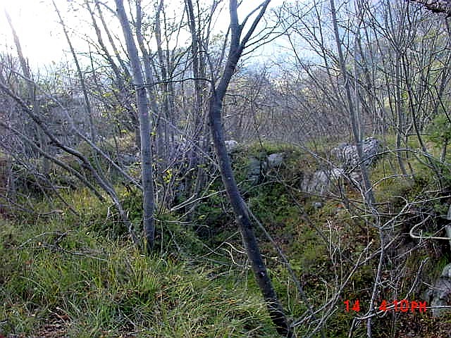 Hierbei handelt es sich um ein stützpunktartig ausgebautes Verteidigungssystem bestehend aus Kampf- und Verbindungsgräben, einer Artilleriestellung mit oberirdischer Kasematte und 2 miteinander verbundenen kleinen Kavernen,d ie direkt an der alten Armierungsstrasse liegen, die von Cadine kommend durch den Talgrund in der Zone Terlago führt und dann auf der Nordwestseite des Soprasasso ansteigt. Sie mündet dort in die den Gipfel umlaufenden Armierungstrassen, die die einzelnen Stellungen und Kavernenbatterien miteinander verbinden. Das Verteidigungssystem im Talgrunde wurde mit Presslufthmmern in das Felsgestein vorgetrieben, die Spuren der Bohrmeißel sind noch erkennbar. Es muss sich um eine ältere Anlage handeln, die Kavernen sind roh ausgehauen und sehr niedrig, bei der Geschützstellung und der Kasematte wurde kein Beton verwendet ,sondern in Naturstein gemauert und /oder geschichtet. Sie wurde mit Sicherheit vor 1914/15 angelegt. Der Stützpunkt liegt völlig isoliert weitab von anderen Verteidigungsanlagen, so dass mir der militärische Sinn dieser Stellung nicht klar ist. Vermutlich wurde sie auch schon 1915 bereits aufgegeben, da zu diesem Zeitpunkt der Berg Soprasasso selbst die Verteidigung auf der Nordwestflanke der Festung Trient übernahm. Die Erkundung unternahm ich mit meinem Freund Arturo Condini, Chef der hiesigen Forstverwaltung. Wie bereits an anderer Stelle angemerkt, ist der Bereich um den Berg Soprasasso ein wahrer Naturpark. Die Gegend ist wunderschön zum Wandern und die Wege (wie üblich alles ehemalige KuK Armierungsstrassen) sind sehr gut instand gesetzt. Natürlich darf dort nicht mit dem PKW gefahren werden ! Das Gebiet wird durch die Forstverwaltung streng überwacht (Brandgefahr und seltene Tiere), jedes Fahrzeug im Bereich wird sofort aufgeschrieben und an die Polizei gemeldet, die dieses blockiert und den Fahrer kräftig zur Kasse bittet (200 Euro). Gruß Volker aus Villamontagna