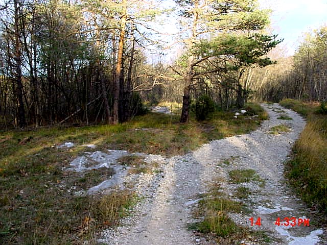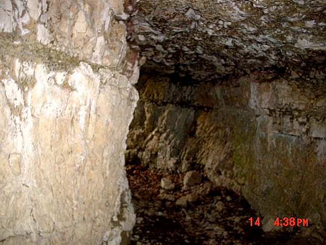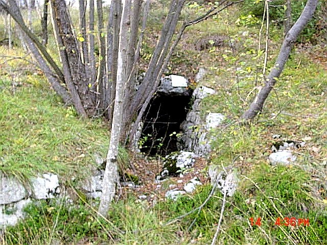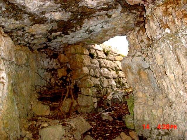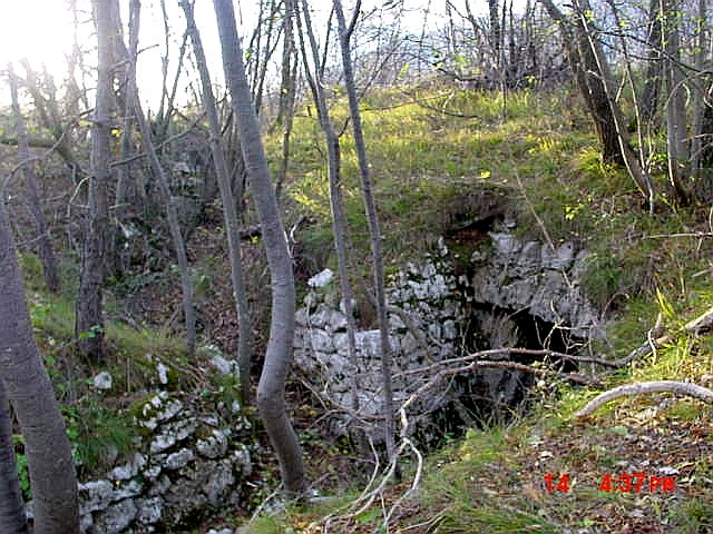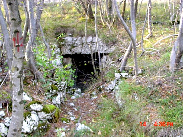 Folgt man einem der Verbindungsgraben kommt man auf die Armierungsstrasse und zu den beiden kleinen Kavernen. Die Strasse ist instand gesetzt und mit Schotter belegt worden, damit hier im Falle eines Waldbrandes die Feuerwehr fahren kann. Die Kavernen sind klein und niedrig, untereinander verbunden. Im Verbindungsgang gibt es eine kleine Nische. VJ