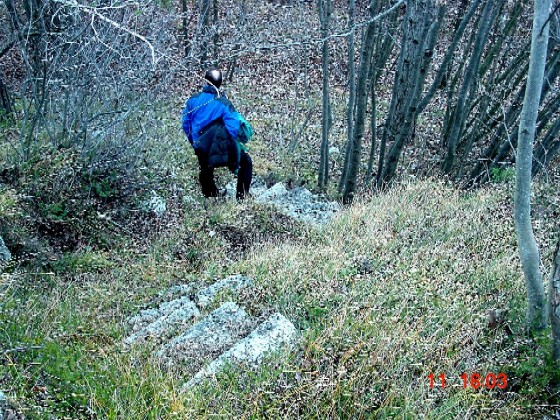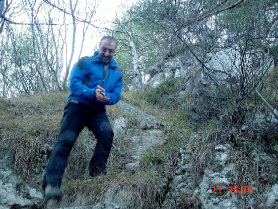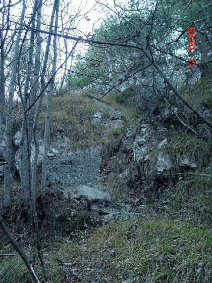 Die schönste Kaverne, die schönste Natursteintreppe der FS Trient! Sogar ein paar eiserne Halter des Geländers sind noch dran und viele Stellungen! Danach haben wir in der von der Forstverwaltung Trient völlig renovierten Malga Brigolina (unterhalb Candriai) herzhaft und gut gegessen. Und es gab echtes tschechisches-slowakisches Bier, traumhaft gut! Die Malga ist ein Geheimtipp, wer gut essen und trinken will, echte natur- und hausgemachte Spezialitäten, allerdings sollte man vorbestellen!- Und zu vernünftigen Preisen! Sie hat auch Viehzucht: Schweine, Kühe und Rinder, alles in der freien Natur. Sie wird vom Konsortium Latte Trentino geführt. Die Leute dort sind sehr freundlich, sprechen auch ein bisschen deutsch. Interessantes Detail: Offen und ehrlich wird dort zugegeben, das man einmal österreichisch war und das man sich an diese Zeit sehr positiv erinnert und auch in Erinnerung behält. Schließlich gäbe es die Malga Brigolina seit 1905,die junge Wirtschaftsführerin kramte dann irgendwo in einer Schublade oben in ihrer Wohnung und kam mit einer uralten Aufnahme zurück: KuK-Offiziere in Ausgehuniform auf der Terrasse der Malga im Jahre 1911!-Pferde und Kutschen im Hintergrund,vor sich auf dem Tisch eine gute Brotzeit und das große Glas Bier in der Hand!