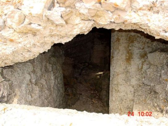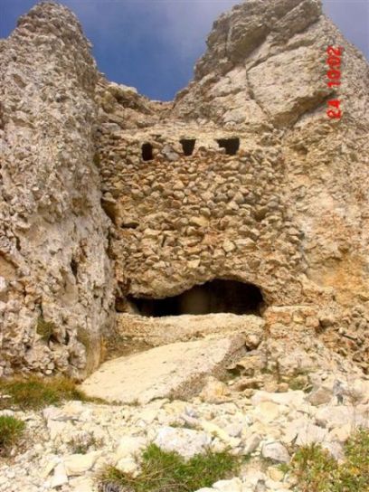 Der mit dem Betondach versehene Graben führt in diese mehrgeschossige Befestigung, die komplett in Beton und mit Naturstein getarnt, gebaut wurde. Von den unteren Stellungen des Betongrabens führt eine komplett betonierte Poterne in die Kavernen. Im unteren Geschoss ist eine MG Stellung, im oberen Geschoss weitere Gewehrscharten. Diese Ecke des Berges ist rein künstlich konstruiert worden! Es ist eine auf mehreren Ebenen (Stockwerken) angelegte Befestigung, die die Bergecke umfasst. Dort sind mehrere MG-Kasematten und vermutlich auch eine Geschützkaverne gebaut worden. Die Schussrichtungen sind Val dei Cei und der Aufgang des gleichnamigen Tales aus dem Valle dei Laghi. Diese Befestigung kontrollierte wirklich alles! Der umlaufende Graben um den Gipfel endet hier. Von den unterirdischen Anlagen dieser Ecke fehlt ein letztes Stück Stollen, das zum Anfang des umlaufenden Grabens auf der Südseite des Gipfels Cornetto führen sollte. Ein Anstich wurde ausgeführt, die Arbeiten aber nicht mehr beendet