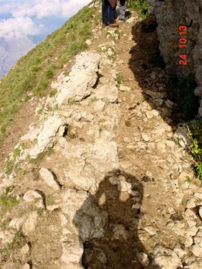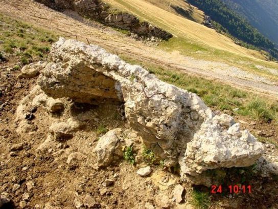 In diesem Schützengraben auf der Südseite des Cornetto gibt es Stellungen für Scharfschützen. Insgesamt 3 Stück. Die Bilder zeigen eine relativ gut erhaltene Stellung, die die Erosion nach 90 Jahren noch nicht komplett abgetragen hat. Wir verlassen den Graben dann, um zum Auto zurück zu kehren, am gleichen Punkt an dem wir unsere Erkundung begonnen haben. Sehr schön zu sehen sind noch die Stahlhaken, an denen das Schutzdach des Grabens befestigt war. Lino trägt inzwischen den 150W Scheinwerfer, ich konzentriere mich auf die letzten Fotos. Franco ist sehr zufrieden mit unserem Ausflug. Abwärts geht es jetzt, auf dem Rückweg besuchen wir noch kurz die Stellungen auf dem Rosta, Lavachel und den Bereich Wolkenstein ( ehemaliger Besitz des Graf Wolkenstein). Ein Vorschuss auf die Exkursion des nächsten Wochenendes, sofern das Wetter gut ist |