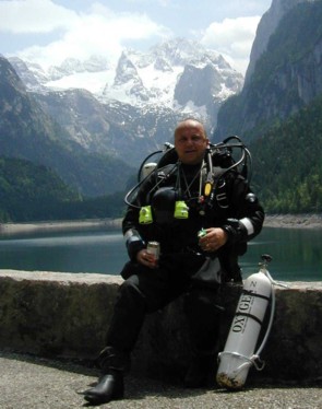 Starnberger See, von dem die Fotos stammen: Ich tauche mit verschiedenen Leuten und Tauchgruppen überall, wo schöne Tauchplätze sind. Bin kein DIR Einfresser und will aus unseren Tauchgängen keine spannende Story machen. Ich bemühe mich, alles einfach und genau tun, ohne Stress und Komplikationen, denn es kann ums Leben gehen. Im Wasser fühle ich mich absolut wohl und frei, nur so kann ich mich voll auf einen reibungslosen Tauchgang konzentrieren. Die Zeit vergeht in der Tiefe wie im Flug, die ganze Ausrüstung kontrollieren, Gasverbrauch, Tiefe, Zeit, Tauchplan ....Plötzlich kommt das Objekt zum fotografieren. Überall absolute Dunkelheit, Wasser 4 Grad C., manchmal Strömung. Jetzt muss doch nur Auslöser gedrückt werden??!! Keine Hektik !!. Für schönste Bilder braucht man auch noch die beste Stelle. Kamera einstellen, Kontrollbilder machen und Histogram durchschauen. Dann geht's los. Mein Buddy hilft mir mit einem Sklavenblitz das Objekt optimal auszuleuchten, oder er stellt sich als Model zur Verfügung. 20 Minuten am Seegrund sind sehr wenig und ein Tauchgang bringt nur wenige Fotos, wenn überhaupt ein Objekt aus dem Dunkel auftaucht. Für die Fotos in dem Bericht habe ich 3 Trimix Tauchgänge benötigt. Keine billige Sache, aber es macht Spaß und ist uns ein Vergnügen. Ich habe voriges Jahr mit Fotografieren auf einem Stativ angefangen, es geht mit langen Belichtungszeiten nicht anders. Es ist aber wieder eine andere Ausrüstungskomponente und noch ein Gepäckstück mehr. Ich suche immer was Neues und versuche meine Aufnahmen immer weiter zu verbessern.