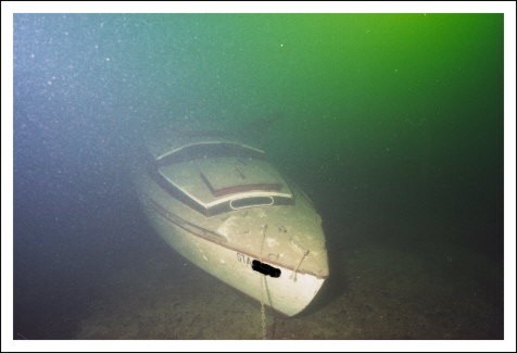 Hurra wir haben ein neues Wrack entdeckt. Ein erst vor kurzem untergegangenes Segelboot bereichert den Seegrund für die Sporttaucher. Natürlich gibt es auch einen Nachteil, es ist vom Ufer aus, wegen fehlenden Parkplätzen, nicht einfach zugänglich. Es liegt mit dem Bug abwärts auf dem ablallendem Seegrund. Die Einrichtung ist noch vorhanden, von einem Betauchen kann wegen der instabilen Lage, nur abgeraten werden. Der Mast liegt neben dem Schiff auf dem Seegrund. Der Grund des Untergangs ist auf der Backbordseite zu erkennen. Ein schönes großes Loch befindet sich knapp über der Wasseroberfläche. Bei diesem Ereignis waren dabei: Lino + Lena, Uli, Uli-Flo, Theo und unser Schlatter-Hanse.