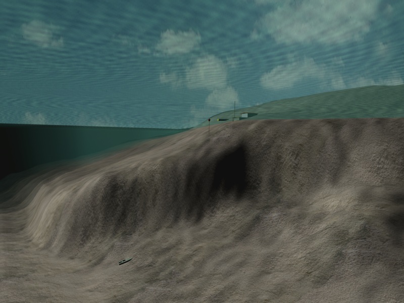 Eine 3-D Darstellung der Steilwand bei Allmannshausen Starnberger See, Wasserwacht, mit dem Segelbootwrack