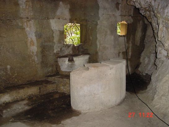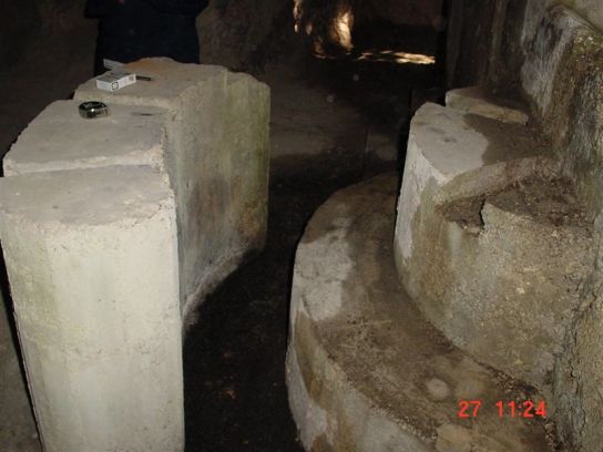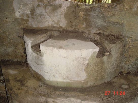 Die Stellungen der Batterie. Vermutlich für 2 KK-MSK. Der Abstand des halbmondförmigen Auflagers ist 1,3m, die Höhe ist 74 cm ohne Tisch. Für einen MG Schützen war der Abstand zur Minimalscharte viel zu weit entfernt, das Feuer wurde vom Beobachter gelenkt, der eine eigene Scharte hatte. Auf den Fundamenten war ein Tisch aufgelegt, der einen Richtwinkel von plus minus 45 Grad zuließ. Die mögliche Depression war -20 Grad. Es gab ein Auflager für ein Vorderpivot, direkt unterhalb der Scharte. Gruß VJ