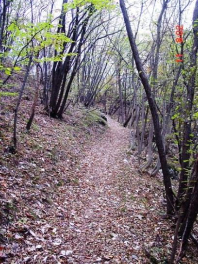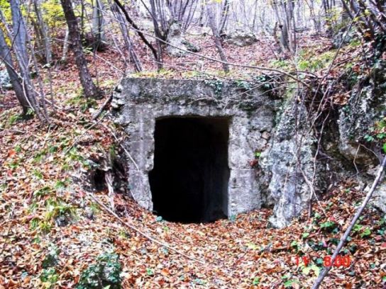 Uli Mößlang / Volker Jeschkeit Vorab: Die aufgefundenen Befestigungen sind viel zu weitläufig, als das man die in einem Tag erkunden könnte. Ich gebe eine Größenordnung an: Sie beginnen auf 250 Hektar Privatgrundstück und gehen über auf ca. 2000 Hektar Gemeindeland weiter. Danach gehen sie weiter auf Provinzbesitz und ziehen sich hoch bis zum Stützpunkt Pale und Palon (Monte Bondone). Die Bilder zeigen daher nur beispielhafte Anlagen. Die erste Kaverne war eine weitläufig angelegte Munitionskaverne mit insgesamt 8 seitlichen Kammern. Sie ist eingestürzt und führt hinunter ins tiefe Felsgestein. Diese Kaverne wurde 1986 das letzte Mal skizziert. Ob die Angaben stimmen, kann ich nicht bewahrheiten, aber im schrägen Zugang nach unten ist oben im Gewölbe ein massiver Holzbalken einbetoniert wurden, an dem wohl einmal eine Aufzugsvorrichtung befestigt. Das letzte Bild zeigt einen Weg zu einem gut ausgebauten Stellungsbereich.
