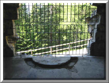 Der Eingang zum Werk. Eine Holzbrücke führt heute noch