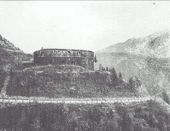 Ein altes Foto des Werks Strino, vom Tonalepass aus