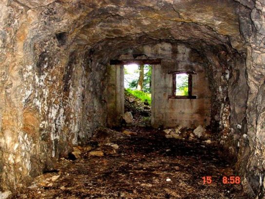 Bei diesen Fotos handelt es sich um den Kavernenkomplex Doss dei Corvi. "C" Sie dienten als Lager und Unterkunft. In einer Kaverne ist eine runde Kochstelle erhalten. (Mannschaftskaverne) Die Offizierskaverne hat sogar noch den Holzrahmen des Fensters und einen teil des Türrahmens...