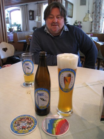 Günter Baumann, hier im Bild, Bierologe vom Richelbräu in Neuhausen hatte am 01.04.2010 zur Verkostung in Münsing beim alten Wirt eingeladen. Nach einem deftigen Entenessen wurden die verschiedenen Geschmacksrichtungen auf Verträglichkeit und Wirkung auf den Kreislauf, sowie Bläschenabbau im Körper, unter Zuhilfenahme der Decobiertabelle, getestet und für sehr gut befunden. Zu unserer eigenen Sicherheit wurden die ermittelten Werte gnadenlos aufgerundet.