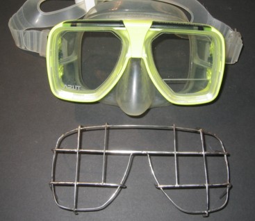"Höhlentauchen für die breite Masse". Da ich mich gerade auf der Fachakademie für Augenoptik ( FFA München ) im zweiten Semester zum Augenoptikermeister befinde und als Spezialleistungsfach Sport-Optik gewählt habe, ging ich die Herausforderung energisch an um die Idee und Arbeit als freiwilliges Meisterstück in meine Abschlussprüfung einzubinden. Die Arbeit ging mir schnell von der Hand, da ich bei meinem Vater im Betrieb gelernt habe und so schon früh mit der Verglasung von optischen Tauchmasken in Berührung kam. Als Material wählte ich Neusilber, das in der Fassungsherstellung Verwendung findet. Es lässt ich leicht bearbeiten, problemlos löten und ist korrosionsbeständig. Das Material wurde mir von unserem Werkstattleiter Herrn Dressler zur Verfügung gestellt. Als Muster nahm ich eine alte Tauchmaske meines Vaters und erstellte verschiedene Gitterarten mit verschiedenen Profilen. Die in den Fotos vorgestellte Gitterkonstruktion erwies sich als die funktionellste. Eine Fertigung aus Titan und Edelstahl ist ebenfalls vorgesehen. Jaime war von meinem Muster begeistert und orderte für seine