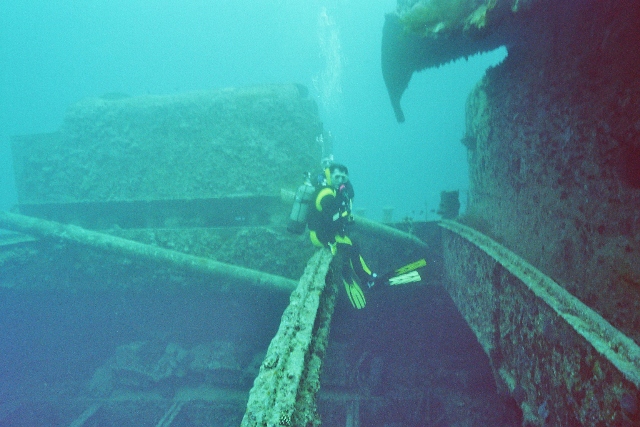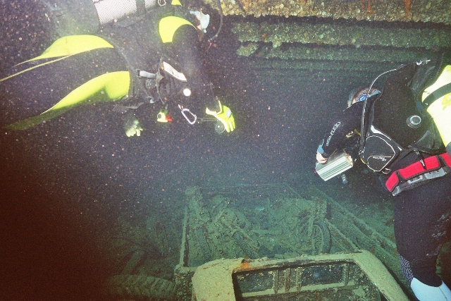 Die Fahrt zur Thistlegorm begann mit frühen Aufstehen, jetzt im Winter bei völliger Dunkelheit. Die Decken wurden auf dem freien Deck ausgebreitet uns sofort weitergeschlafen. Als wir um Ras Mohamed rumfuhren ging langsam die Sonne auf, die See war ruhig und so kamen wir als erstes Schiff zur Thistlegorm. Unser Guide Hatem fand mit traumwandlerischen Sicherheit das Wrack und legte unser Schiff an das Wrack. Wir standen schon bereit zum Tauchgang, als Hatem wieder an Bord kam um die Flasche zu wechseln. So ließen wir uns zum 2. Laderaum fallen und im Strömungsschatten sammelten wir fünf uns. Mit Hatem hatten wir die Wege genau abgesprochen und die tauchten wir auch. Sogar die gut gefüllten 15 Liter Nitrox gingen mal zu Ende und begrenzten unsere Verweildauer am Wrack. Beim Aufstieg staunten wir nicht schlecht, ein Guide schickte seine Truppe an unserm Seil zum Wrack runter. Die Truppe kämpfte sich buchstäblich mit vollem Körpereinsatz zwischen uns durch, keine Vorsicht auf unsere Fotoausrüstung, die wir nur durch das verlassen des Seils retten konnten.