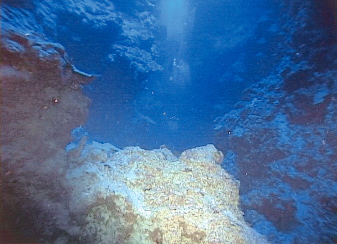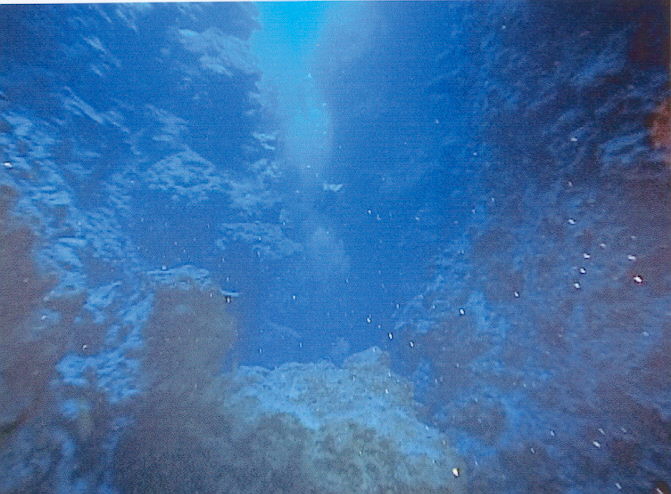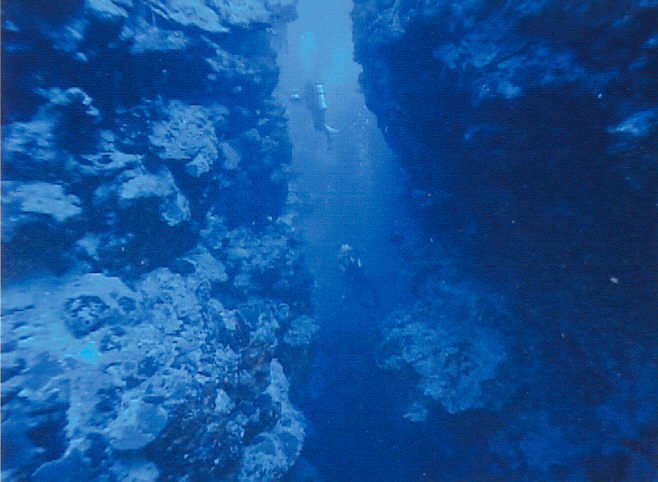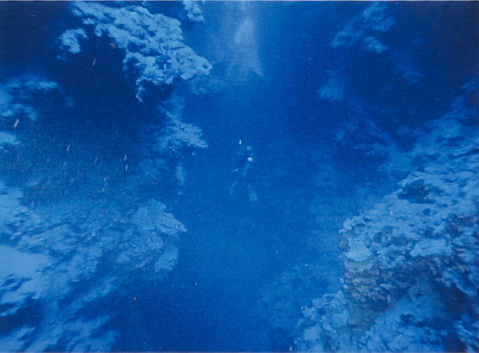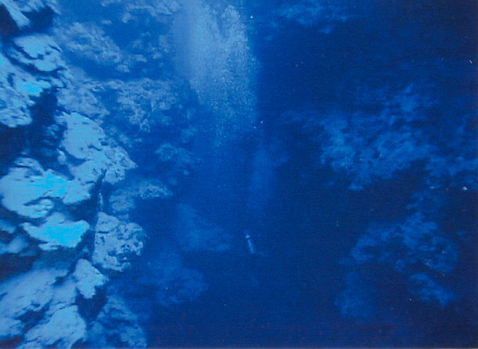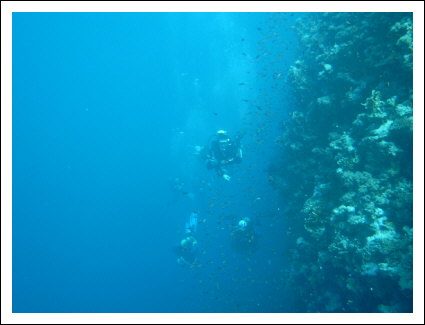 Die Taucher erreichen die Canyon-Kante, die im heller werdenden Wasser