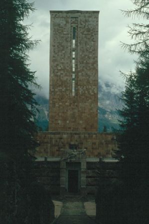 Hier wurde General Cantore am 20. Juli 1915 an der Fontana Negra Stellung von einem österreichischen Scharfschützen getötet Überhalb von Cortina steht dieses weithin sichtbare Denkmal. Zufahrt: Unterhalb des Hotels Belverdere dem Wegweiser Sacrario Militarie folgend. Hier ruht der General (das Denkmal ist sehenswert und kostet in der Hauptsaison Eintritt).