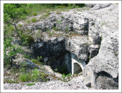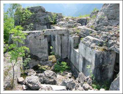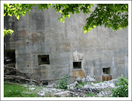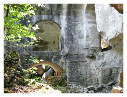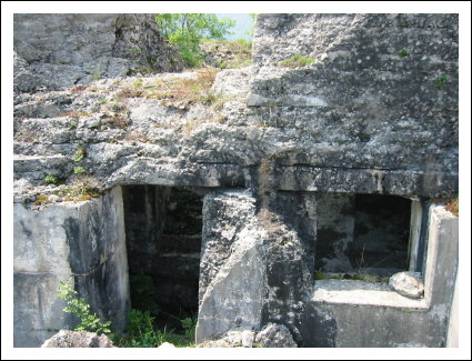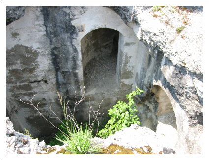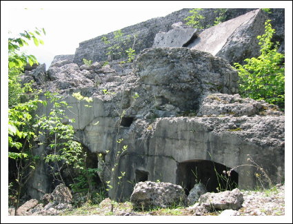 Die Geschützbrunnen mit den Zugängen sind noch gut zu sehen.