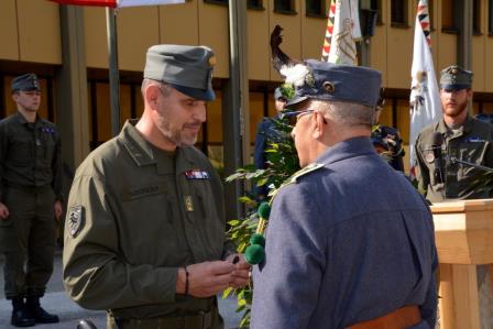 Mit Tiroler Kaiserschützengruß der Bundesobmann des Kaiserschützenbundes Tirol 1921 Hans-Peter Gärtner, Vzlt i. R. Bundes - Major