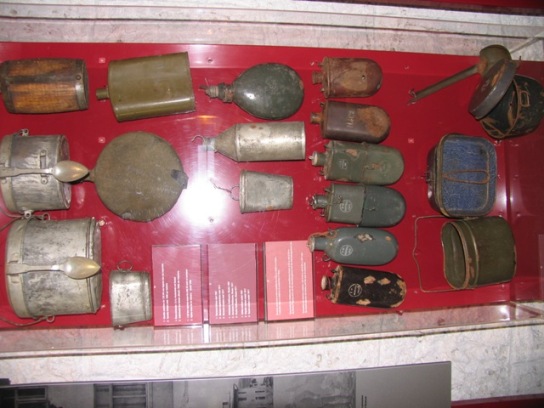 Feldflaschen und Essgeschirr. Das Essgeschirr muss gut durchdacht gewesen