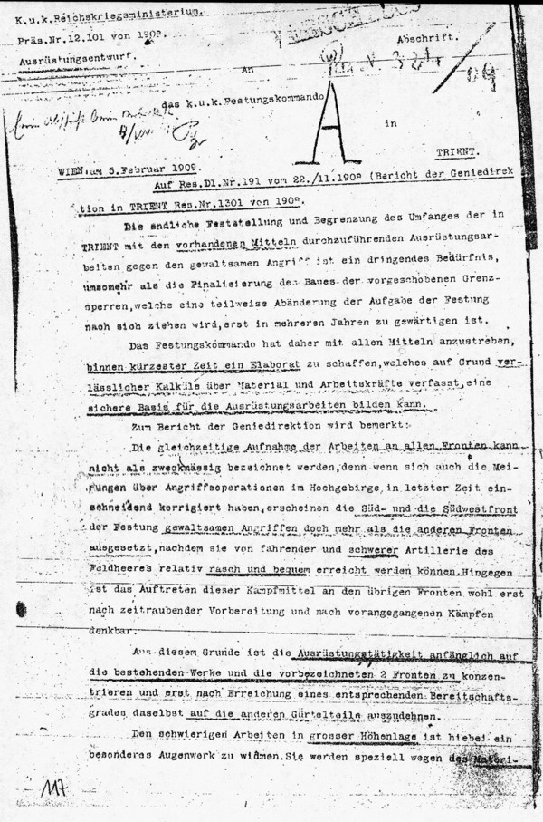 Ausrüstungsentwurf 1909-Antwort auf den Bericht der Geniedirektion von 1908