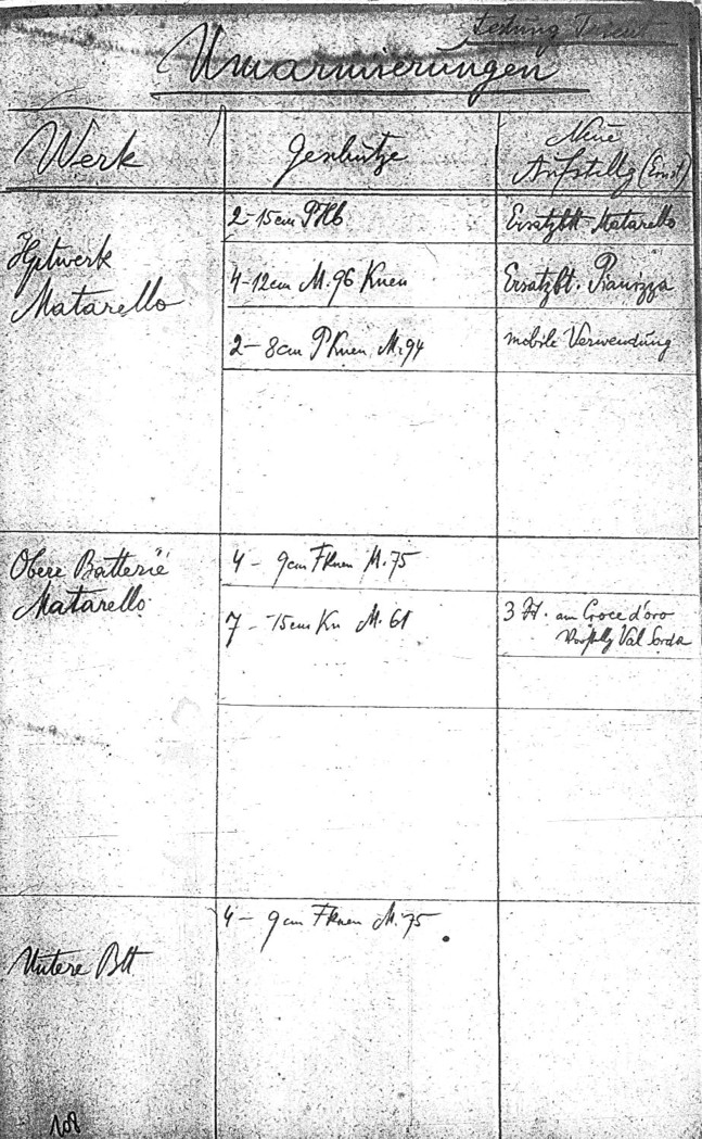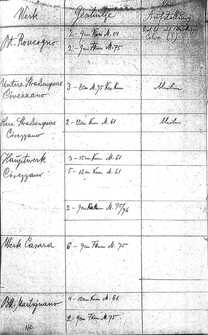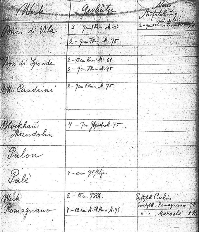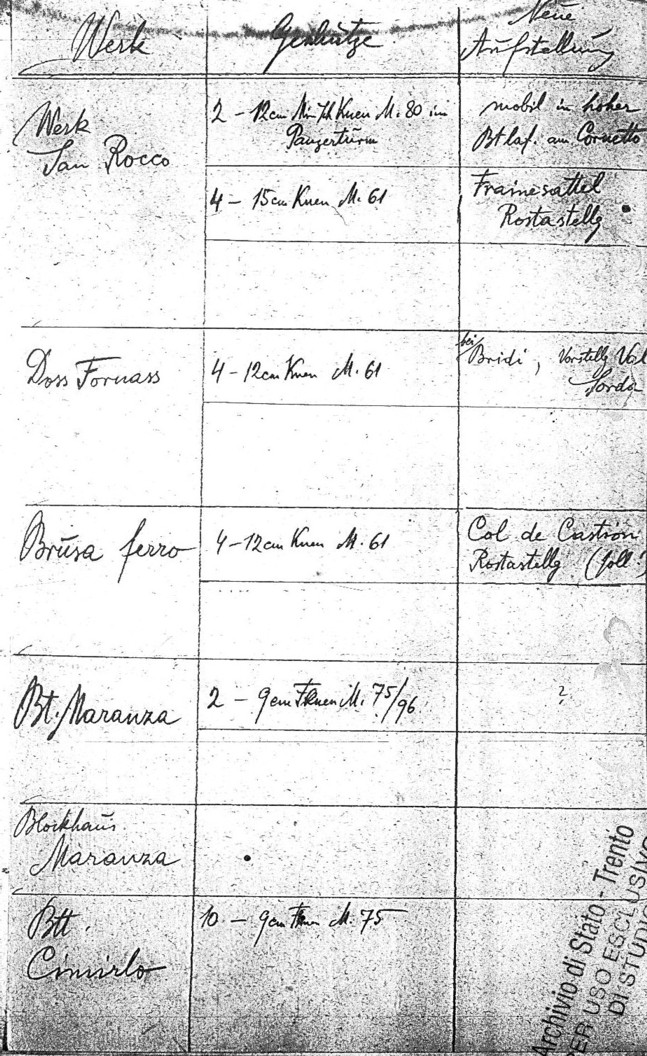 Infanteriestützpunkte, Festungen der Österreicher und Ex Forte der