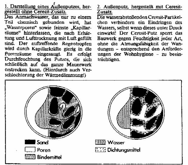 Nachteil : Sie waren nicht wasserdicht. Der Zusatzstoff Ceresit löste das Problem: