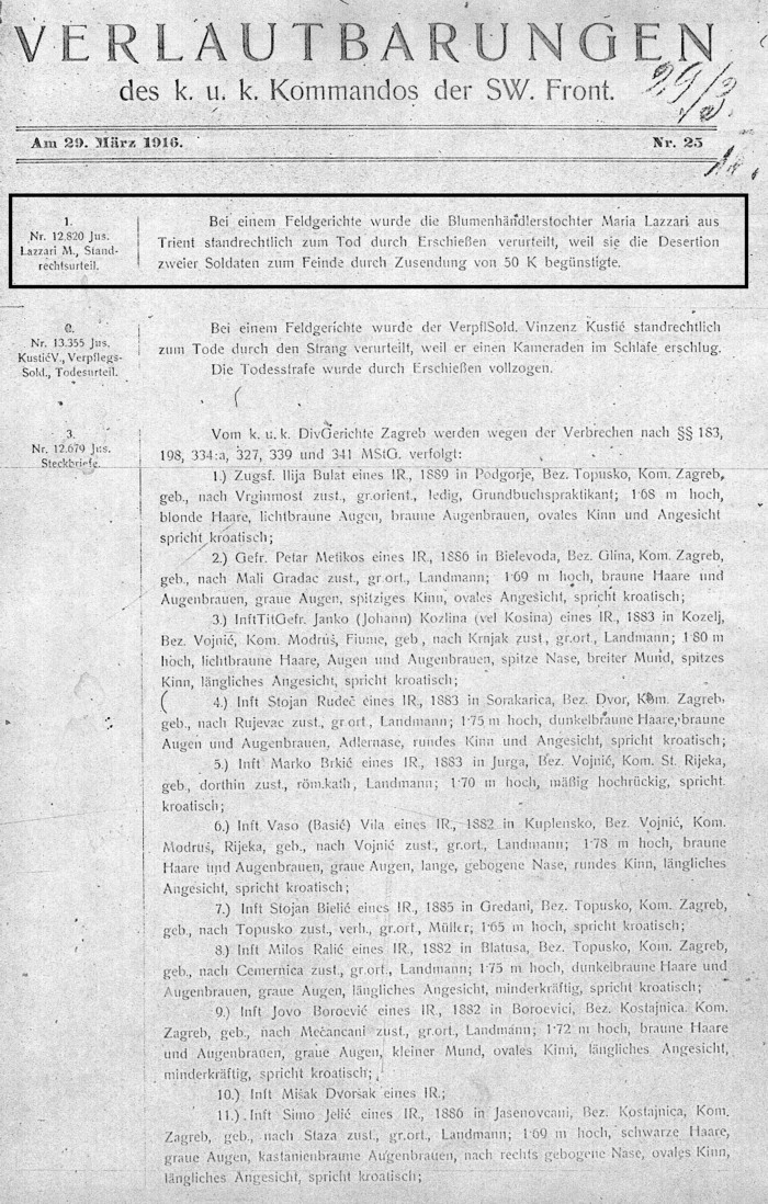 des k.u.k. Kommandos der SW. Front vom 29. März
