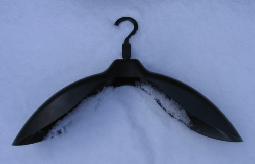 einen Trockentaucher glücklich machen sollte. Die Verarbeitung ist sauber, ohne störende Gussnähte und scharfe Kanten. Er fühlt sich geschmeidig an und ist mit 415 Gramm nicht zu schwer. Die Materialbeschaffenheit und Formgebung verhindert ein Verdrehen oder Bruch unter Belastung. Der drehbare, 14,5 cm hohe Haken, aus dem gleichen Material, ist mit einem Klemmring befestigt, der für die nötige Festigkeit sorgt. Er ist so groß dimensioniert, dass er auch in den Trockenräumen über Wasserleitungsrohre gehängt werden kann. Die Auflagefläche ist 75cm lang, im Schulterbereich 10cm breit und jeweils 6,5cm nach unten gezogen. Die lichte Weite zwischen den Bügelspitzen beträgt stattliche 58cm und sorgt so für eine optimale Passung. Einen Bruchtest hat er bei -7 Grad aus 2,5m Höhe auf einen Steinboden unbeschadet überstanden. Mit diesem Bügel für Trockentauchanzügen ist der Fa. Swoboda Engeneering ein großer Wurf gelungen, für alle Trockentaucher die schon immer mit den bisher angebotenen Bügeln unzufrieden waren. Leider existiert jetzt die Firma nicht mehr. Als ersatz bietet GNT Uli Schreiber einen ähnlichen Bügel an.