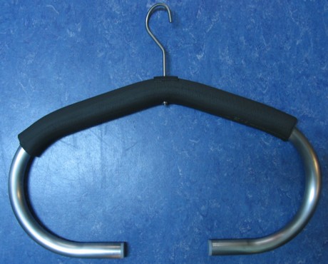 | Ein neuer Bügel für Trockentauchanzüge aus rostfreien Edelstahl. Rechtzeitig zum Weihnachtsfest ist ein neuer Bügel für Trockis auf den Markt gekommen. Er ist für alle Taucher gedacht, die sich schon oft über die windigen Plastikbügel geärgert und sich etwas besseres gewünscht haben. Das Edelstahlrohr hat einen Durchmesser von 28mm , ist ohne Knickstellen passend geformt und mit Plastikstopfen an den Rohrenden versehen. Die Maße sind in der Breite 55cm und in der Höhe 32cm ohne Haken Der Haken ist aus einem 6mm Draht geformt, ragt 14cm aus dem Rohr, ist mit einer Beilagscheibe und einer selbstsichernden Mutter gesichert und verspricht höchste Stabilität. Ein Gewicht von über 100kg hält er mühelos aus. So macht es auch nichts aus, wenn man einmal im Trockenraum stolpert und ihn als letzten Rettungsanker gegen blaue Flecke erwischt, falls es der Dübel aushält :-) Die Auflagefläche ist mit