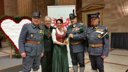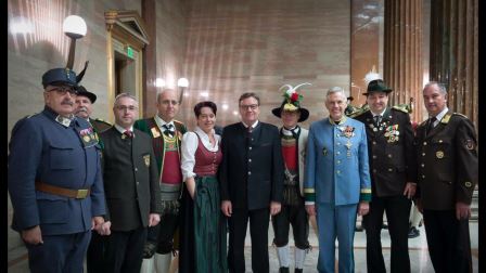 . Abordnungen der Schützenkompanien, Fahnenabordnungen der Traditionsvereine und des Kaiserschützenbundes Tirol 1921 empfingen am 14 Februar 2017 die Präsidentin des Bundesrates vor dem Parlament in Wien zu einen Landesüblichen Empfang. Die Front wurde durch die neue Bundesratspräsidentin Sonja Ledl-Rossmann und Landeshauptmann Günther Platter abgeschritten. Der darauffolgende Abend stand in Wien ganz in Zeichen von Tirol: Bundesratspräsidentin Sonja Ledl-Rossmann lud gemeinsam mit Landeshauptmann Günther Platter zum Tirol-Abend in die Säulenhalle des Parlaments ein.