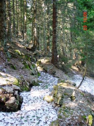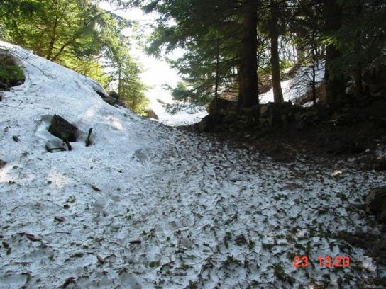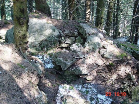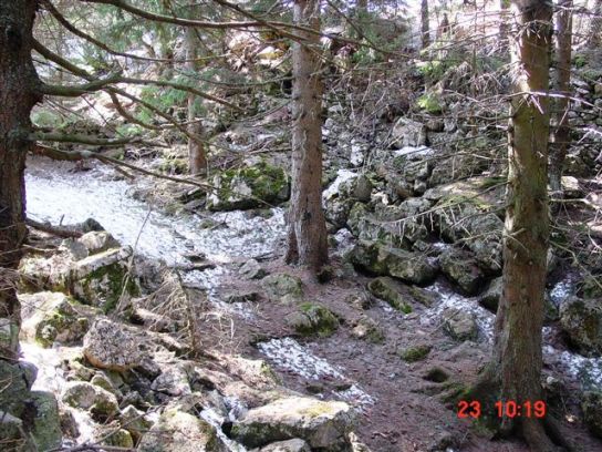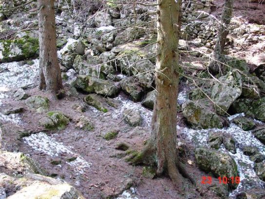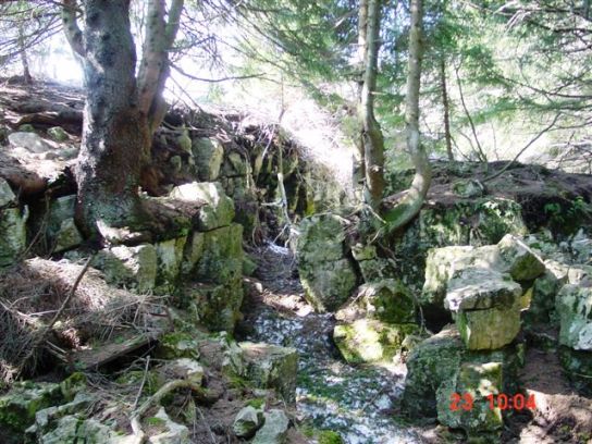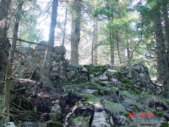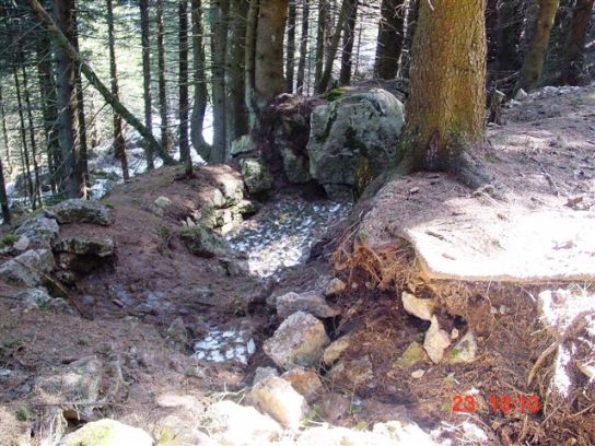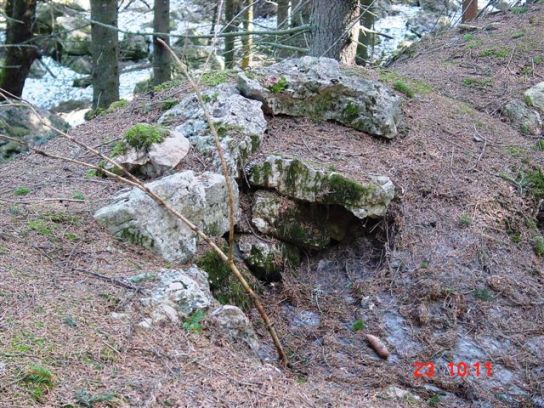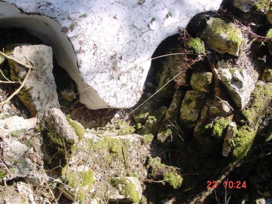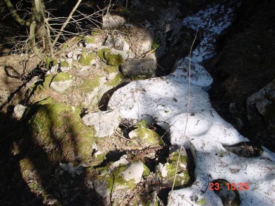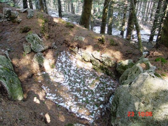Unterstände, Verbindungsgräben, Stellungen und Schützennischen des Stützpunktes V/4. Der Stützpunkt ist groß und weit verzweigt. Im hinteren Teil gibt es einen großen gedeckten Platz mit 2 Zugängen, eine richtige Mulde im Fels, die künstlich erweitert wurde. Die Verbindungsgräben wurde direkt in den Fels gehauen, die gleiche Technik , die auch bei den Stellungen unterhalb des Palon (Stützpunkte V/1 und V/2) und auf dem Artilleriestützpunkt Castellar della Grua zur Anwendung kam. Der Stützpunkt V/4 ist quasi zweigeteilt. Eine große Rinne, die zu einem Trichter wird, teilt ihn. Um diesen herum liegt ein Meer von Felsbrocken und losem Gestein. Es sieht aus, als hätte hier eine massive Sprengung stattgefunden. War hier die kleine Kavernenbatterie? Auch die Schützengräben und Stellungsbereiche sind hier unterbrochen und wie durchschnitten. Auffallend ist, das genau zu dieser Stelle ein breiter Armierungsweg führt, der von Norge aus gedeckt abgeht. Vereinzelt findet man auch kleine Betonbrocken, die wie geschreddert aussehen. Dies geschah immer dann, wenn man den Baustahl zurück gewinnen wollte. Die Batterie war sicherlich mit Stahlträgern verstärkt worden, ihre Überdeckung kann nicht sehr groß gewesen sein, schätzungsweise nur 3-4m. In der Anlage zu Reg.5840- Liste der Sicherungsarmierung der Festung Trient aus dem Jahre 1915, wird die Kavernenbatterie Malga Vazon aufgeführt mitsamt ihrer Bewaffnung (2 x 9cm/M75 Feldkanonen). Es gibt aber im weiten Umkreis dieses Stützpunktes und auch bei der Malga Vazon keine Kavernen! Der Ort wäre richtig gewesen, der Schussbereich in das Valle dei Laghi war optimal. Sehr schön, wie der Schnee die Form der Schützennischen in den Kampfgräben beschreibt. Auch die gemauerten Reste treten nach der Schneeschmelze zu Tage. Der gesamte Stützpunkt wurde 1912 in der alten Technik angelegt: Schützengräben, Stellungen und Nischen wurden mit geschichteten Trockenmauern befestigt. Unterstände direkt in den Felsen gegraben und mit einem Schutzdach versehen. Erst 1915 kam GM Steinhart und führte den Beton ein....... Gruß aus Villamontagna, Volker