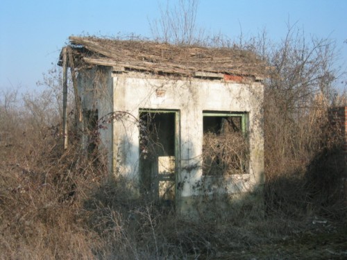 Das Wachhaus am Tor. Hier führt die Straße direkt vorbei, ist aber eingezäunt.