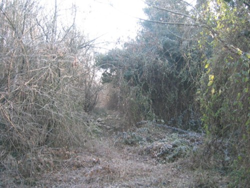 Auf der linken Seite geht jetzt ein Trampelpfad zum Wall auf dem sich