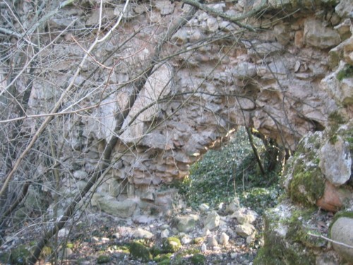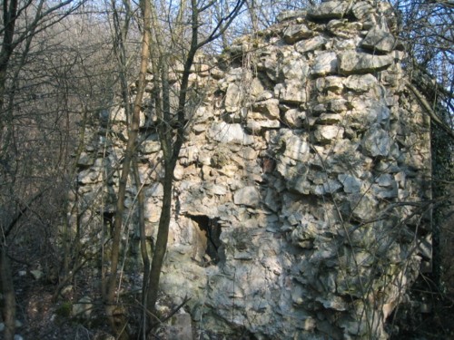An einigen Mauerresten sind die Dachplatten noch auf der Mauer.