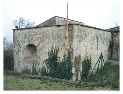 Von außen kann man bei der Kehlseite den Graben mit der Brücke
