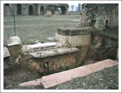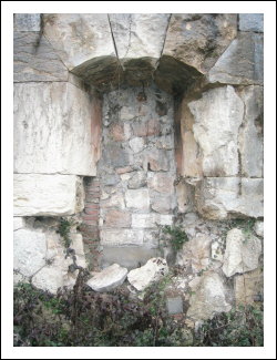 Hier ist deutlich die Zerstörung erkennbar. Rechts führte eine Rampe