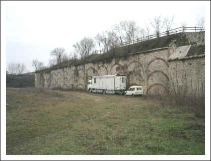 auf das Dach. Die Rampe ist auch nur noch in Teilen erhalten.