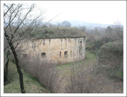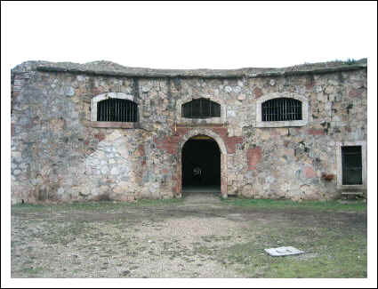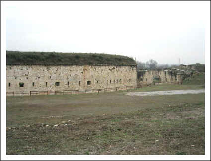 Das Zentralgebäude, feindseitig, und die östlichen Kasematten.