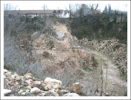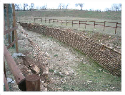 Der Graben um das Zentralgebäude, mit runden Feldsteinen feindseitig