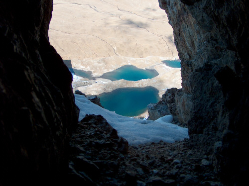 im Gang, eine Öffnung mit Bergseen im Pejotal