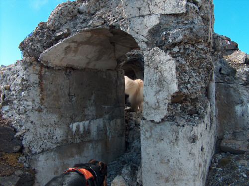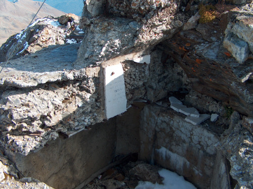 Betonierte Gipfelkasematte, die Stahlteile wurden ausgebaut
