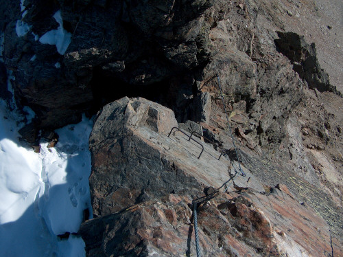 heutige Zustieg zur Gipfelkasematte ist ein wenig Luftig, hier kann man