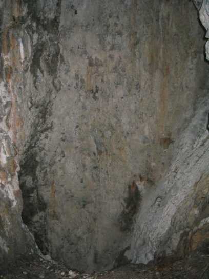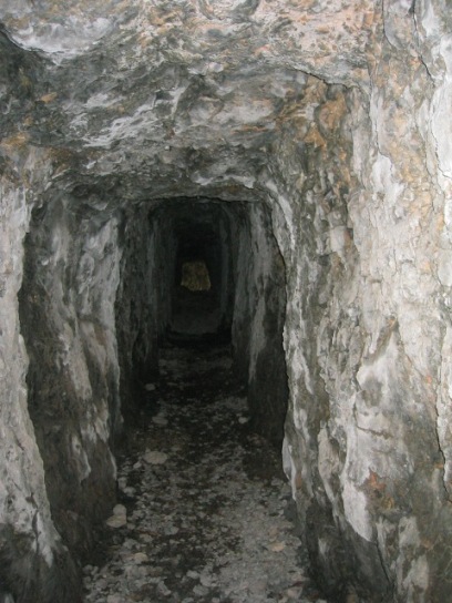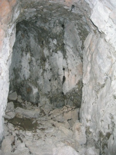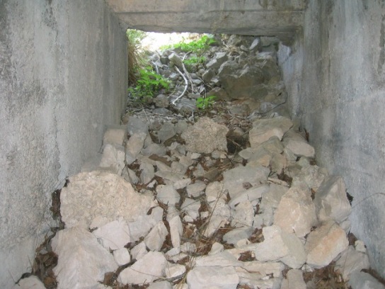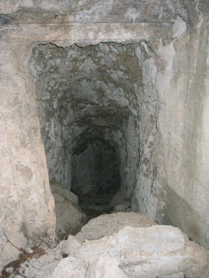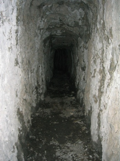 Nach Rechts geht ein betonierter Stollen der gleich oberhalb des