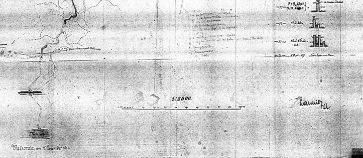 Schön zu sehen ,der Ausbaustadium der noch alten Verteidigungslinie durch das Valsorda-Tal. Die hellen Teile (mitten im Tal und Richtung Etschtal, im Original :Grün) sind noch nicht fertig, dafür weit fortgeschritten der Kavernenbau verschiedenster Arten (siehe Legende). Interessant auch die Anlage umfangreicher Minenfelder, schon 1914,sowie der Einsatz von Steinmörsern, der im Grunde genommen nur ein leicht aus der vertikalen geneigter Betonklotz mit einem Sackloch war, also eine Art Vorderlader-Mörser. Dies veraltete Waffe wurde dann durch die modernen Minenwerfer während des Krieges nach und nach ersetzt. Die Linie im Valsorda-Tal wurde dann aber 1915 weiter nach vorn in Richtung Vigolo Vattaro verlegt. Mit dem Bau der Kavernenbatterie oberhalb Vigolo Vattaro auf dem Südhang des Marzola und der gegenüberliegenden Kavernenbatterie auf dem Col di Caura (Vigolana) verlief die Linie in etwa kurz hinter Vigolo Vattaro. Die beiden Kavernenbatterien waren ein exzellenter Flankenschutz und konnten außerdem weit über Vigolo Vattaro hinaus ins Vorfeld schießen. Unterstützt wurde die Linie durch die Batterien beim Werk Dos Fornas und dem Werk Brusa Ferro, die direkt ins weiter zurückliegende Valsorda-Tal über Vigolo-Vattaro hinaus schießen konnte. Um die Verteidigung weiter zu komplettieren, brachte man in der Nähe des Biwak Maranza kurz unterhalb des Gipfels Marzola -Süd weitere Haubitzenbatterien in Stellung, die für den Feind im toten Winkel seiner Artillerie lagen, somit nicht bekämpft werden konnten. Damit war des relativ enge Valsorda-Tal effektiv gegen jeden Angriff verteidigungsfähig und die Infanterie bekam bei der Abwehr mehr als genügend Artillerie-Unterstützung. VJ
